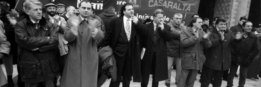 La presa di coscienza del rischio amianto avvenne in un contesto già segnato dalla crisi produttiva che porterà alla chiusura dell’azienda. Nel 1992, furono annunciati 130 licenziamenti, poi evitati con il ricorso alla cassa integrazione a zero ore. Nel 1996, ebbe inizio la lunga vertenza contro la dismissione della fabbrica. All’epoca, la Casaralta occupava circa 250 lavoratori, circa la metà di quelli impiegati nello stabilimento bolognese alla fine degli anni Settanta. A partire dal 10 novembre 1996, si susseguirono scioperi, agitazioni, incontri tra organizzazioni sindacali, rappresentanti delle istituzioni locali e nazionali, leader politici. La consegna di alcuni prodotti di punta della fabbrica bolognese (carrozze per l’Etr 450 e motori per l’Etr 500) venne bloccata dai lavoratori, che rivendicavano il diritto di conoscere il futuro dello stabilimento. La lotta si fece più aspra quando l’amministratore delegato di Firema comunicò la volontà unilaterale di chiudere l’azienda. La mobilitazione contro la dismissione della Casaralta varcò i confini della fabbrica e si estese sul territorio, con un’importante attivazione della società civile e delle istituzioni locali. L’ipotesi in discussione, creare un polo nazionale del trasporto pubblico a Bologna che facesse capo alla Casaralta e alla Breda-Meranini Bus, non trovò tuttavia i consensi necessari. La fabbrica venne occupata il 9 dicembre 1996: l’occupazione proseguì durante le vacanze di Natale, con la pacifica irruzione dei bambini dei dipendenti, e si concluse con l’assemblea del 14 gennaio 1997. Molti leader politici si recarono in visita, tra i quali Sergio Cofferati, Massimo D’Alema, Walter Vitali, Romano Prodi. L’accordo che portò alla fine della travagliata vertenza Casaralta e alla chiusura dello stabilimento fu raggiunto il 10 marzo 1998: dei 177 lavoratori ancora in servizio, 60 vennero assunti dalla Casaralta Componenti (definita “piccola Casaralta”), 20 dalla Breda Menarini Bus, i restanti furono accompagnati alla pensione o vennero tutelati in altre forme perché appartenenti a categorie protette.